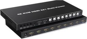 Ennovor 4K KVM HDMI Multi-viewer 8x1 HDMI KVM Multi Viewer Seamless USB Synchronous Switch 8 in 1 Out Controller Support Mouse Traversal(with AU Plug)