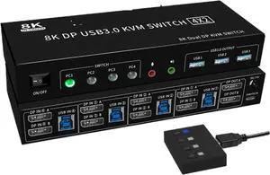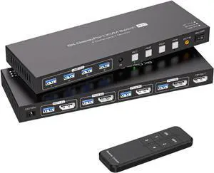 Ennovor 8K DisplayPort KVM Switch 2 Monitor 4 Computer,KCEVE Dual Monitor KVM Switch DP USB3.0,Support 4k@144Hz,for 4 PC Share 2 Display(4 in 2 Out)