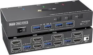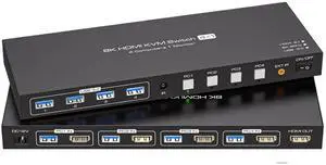 Ennovor 8K@60Hz KVM Switch 2 Monitors 4 Computers HDMI,USB 3.0 KVM Switcher Box with Emulator for 4 Computers Share Keyboard(with AU Plug)