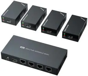 Ennovor 4K X 2K HDMI-Compatible/USB KVM Switch Splitter 1X4 HDMI Extender 60m 1 to 4 Over caT5e,cat6 RJ45 Output Full HD1080p(1x4-1080P -CAT6-IR)