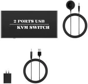 Ennovor USB2.0 KVM Switch Switcher(2 in 1 Out), for 2 Computer 1 Monitor, USB2.0 Device for Keyboard Mouse Printer