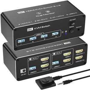 Ennovor 8K KVM Switch 2 Monitors 2 Computers HDMI Support 8K@60Hz 4K@144Hz, KVM Switch Dual Monitor with 3 USB 3.0 Ports Sharing Keyboard and Mouse Printer/Scanner, Desktop Controller