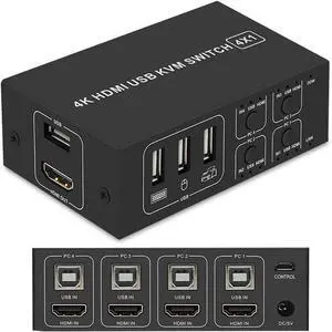 Ennovor 4-Port HDMI USB KVM 4K Switch Splitter for Shared Monitor Keyboard and Mouse Adaptive EDID/HDCP Printer Plug and Play
