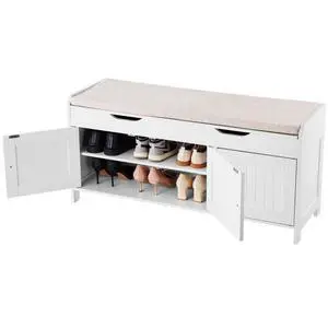 Shoe Bench with Cushion and Adjustable Shelf 41.3x13.8x19.8 Inch 3 Compartments