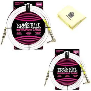 Ernie Ball Instrument Cable with Zorro Instrument Polishing Cloth - Pack of 2 (White, 15 Ft)