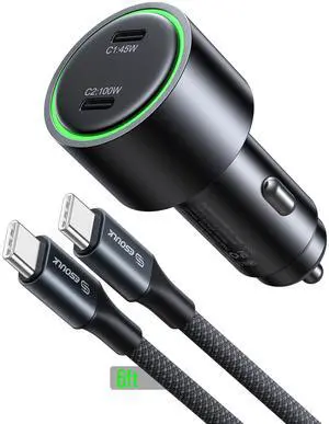Esoulk 145W Super Fast Charging Car Charger For Macbooks, Laptops, Tablets, Smartphones with 6Ft 100W USB-C Cable