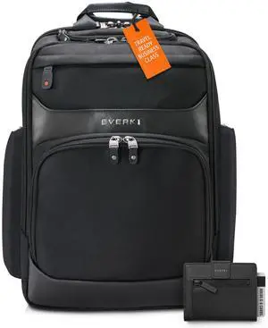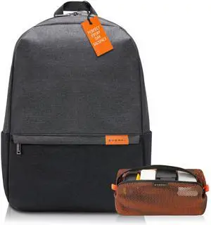 EVERKI Light Laptop Backpack with Hidden Pocket (EKP106) with Orange Accessory Pouch - Durable Backpack with 15.6" Compartment, 23L Capacity - Light Backpack & Accessory Pouch Bundle