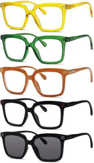 Eyekepper 5 Pack Square Reading Glasses for Women Large Frame Readers Include 2 Pairs Green +4.00