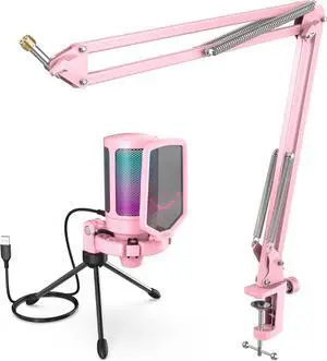 FIFINE Gaming USB Microphone Kit, PC Streaming Recording Computer RGB Microphone Set for Podcasting, Singing, YouTube, Condenser Cardioid Mic with Quick Mute, Gain Knob-A6T Pink