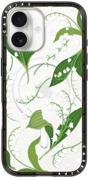 Compact iPhone 17 Case [Slim and Sleek/Compatible with Magsafe / 4 ft. 2X Military Grade Drop Protection] - Lily of The Valley - Clear Black