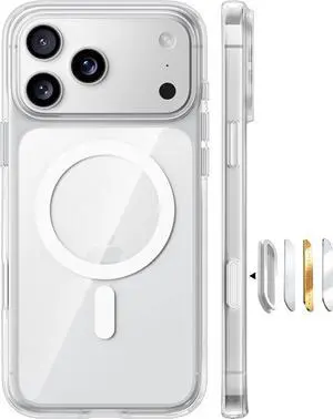 Stronger Magnetic & Anti-Yellowing for iPhone 17 Pro Max Case Clear Fit for MagSafe Military Grade Drop Protection Camera Control DIY Button Slim for iPhone 17 Pro Max Case Diamond Clear