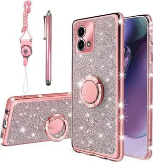 for Motorola G Stylus 5g 2023 Case Moto G Stylus 5g 2023 Case(not 4g) for Women Glitter Crystal Stylish Clear Tpu Luxury Bling Protective Cover with Kickstand Strap for G Stylus 5G 2023(Glitter Rose)