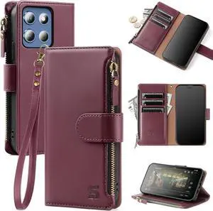 Compatible with Motorola Moto G Stylus 5G 2026/2025 Wallet Case with Card Holder Women Men RFID Blocking PU Leather Flip Case Protective Cover Wrist Strap Credit Card Slots Wine Red