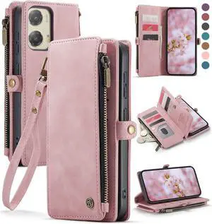 Compatible with Moto G Stylus 5G 2024 Case RFID Blocking Wallet Case Compatible for Motorola Moto G Stylus 5G 2024 PU Leather Flip Strap Zipper Card Holder Phone Case for Women Rose Pink