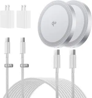 for [ MFi Certified] 15W Magsafe Wireless Charger Qi2 Magnetic Wireless Phone Charger Fast Charging Pad for iPhone 17 Air 16 15 14 13 12 Pro Max Airpods(20W Adapter Included) 2 Pack(White)