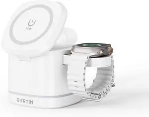 3 in 1 Magnetic Wireless Charging Station for Devices Fast Foldable Travel Mag-Safe Charger Stand with Night Light for iPhone 17 16 15 14 13 12 Series Watch/