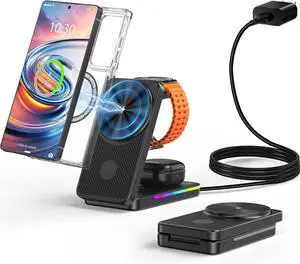 3 in 1 Foldable Wireless Charging Station for Devices Faster Nightstand Magnetic Charger Stand Desk Accessory for iPhone 17/16/15/14/13/12 Watch AirPods