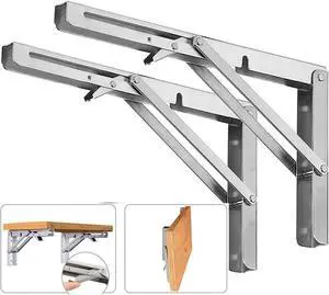 Folding Shelf Brackets Max Load 300 lb Heavy Duty Stainless Steel Collapsible Wall Mounted Shelf Brackets for Table Space Saving DIY Bracket Pack of 2 (2 Foldable 12)