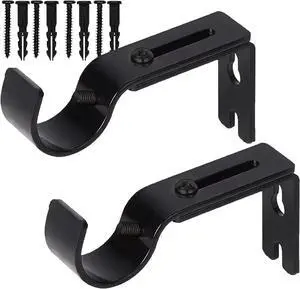 Premium Curtain Rod Brackets - 2 Pack Adjustable Wall Mounts Curtain Rod Holders for 1 Inch Rod (Black)