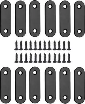 12 Pcs Straight Brace Flat Brace 2 x 0.6 Stainless Steel Straight Bracket Mending Joining Plates for Wood Board Bed Frame Furniture & Shelves Matte Black