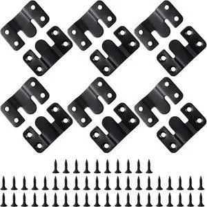 12PCS 2.09 x 1.18 inch Black Flush Mount Bracket Stainless Steel Interlock Hanging Buckle Z Clips Headboard Wall Mounting Brackets French Cleat Picture Hanger Heavy Duty with 48PCS Screws