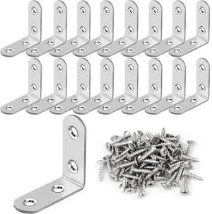 16 Pcs L Bracket Stainless Steel Corner Brace Sets 90 Degree Right Angle Brackets with 64 Pcs Screws L Bracket Firmware for Wooden Shelves Chairs Tables Dressers Furniture (Silver)