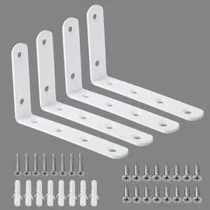 Floating Shelf Brackets L Brackets for Shelves Heavy Duty Shelving Brackets Stainless Steel Corner Brace Angle Bracket for Wood 5x3 Inch Wall Shelf Bracket White Pack of 4