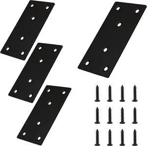 4pcs Metal Flat Straight Brace Bracket 4 x 2 (L x W) Stainless Steel Mending Plate Joining Bracket Wood Connectors for Furniture Corner Braces with Screws (Black)