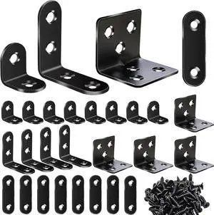 96PCS L Brackets for Shelves & Flat Plate Straight Bracket Black Stainless Steel Shelf Brackets L Shape Heavy Duty Metal Corner Brace for Wood Furniture Cabinet Chair (0.78 1.2 1.57 1.97inch)