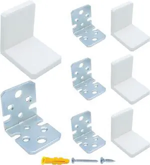 L Bracket White Shelf Brackets Stainless Steel Corner Brace Furniture Anchors for Baby Proofing Heavy Duty Cabinet Hanging Brackets Plastic Cover Metal Brackets for Shelves 4 PCS