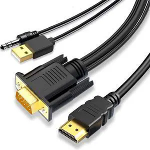 VGA to HDMI Adapter Cable 6FT Uni-Directional VGA (Source) to HDMI (Display) Cable with Audio & USB Power 1080P@60Hz Display Cord from Desktop PC Laptop to TV Monitor Projector