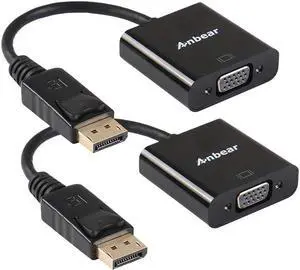 2 Pack DisplayPort to VGA Adapter Gold Plated Black 20cm 1080P@60HZ 1920x1200 Laptop & PC Compatible