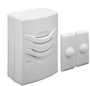 IQ America WD1152 Wireless Plugin Contemporary Door Chime Door Bell 2 Pushbuttons 3 Melody Notes Westminster Chime Volume Control 150 foot Range Simple Install Use Anywhere RV Cabin Office! White