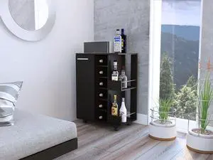 Tennessee Bar Cart, One Cabinet With Division, Six Cubbies For Liquor, Two Shelves