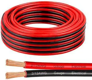 12 Gauge Wire 25 Feet, 12/2 AWG Pure Copper Wire, 12AWG 2 Conductors Red Black Oxygen Free Stranded Low Voltage Wire for Solar Panel, Automotive, Audio Auto, LED Lighting(12 AWG 25FT)