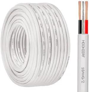 MOOKEERF 18 AWG 2 Conductor Stranded Shielded Plenum Cable 100FT 18/2 Shielded Wire White CL3P Jacket for Security/Alarm/Access Control/Sound-18AWG 2 Conductors Wire