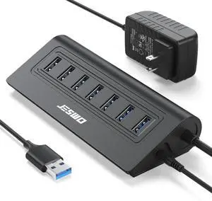 Powered USB Hub, JESWO 7-Port USB 3.0 Hub, Aluminum USB Data Hub with 3.3ft Cable, USB Hub 3.0 Powered with 20W Power Adapter for MacBook, Mac Pro/mini, iMac, XPS, PC, USB-Flash Drives, etc. (Black)