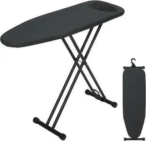 Ironing Board 43x13 with Iron Rest, RAINHOL Compact Iron Board Full Size with Thick Cover and Pad, Easy Storage Hanger with Heat-Resistant Silicone Pad, Space Saving and Height Adjustable, Black