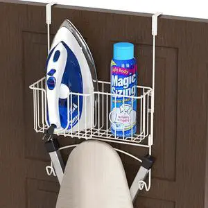 KES Over The Door Ironing Board Holder, Ironing Board Hanger Over Door Organizer with Storage Shelf Y and T Shaped Fits for 1 3/8 Doors White, HIR501A-WH