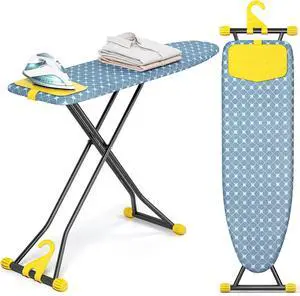 KINGBOARD Ironing Board, Compact Iron Board with Silicon Iron Mat, Heat Resistant Cover, 7 Height Adjustable, Foldable Ironing Board Wall Mount Hanger, 13x43 Yellow