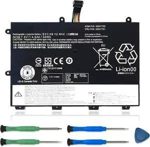 45N1750 45N1748 Laptop Battery Compatible with Lenovo ThinkPad Yoga 11E/ Yoga 11E Chromebook Series Notebook 45N1748 45N1749 45N1751 7.4V 34W 4600mAh 4-Cell