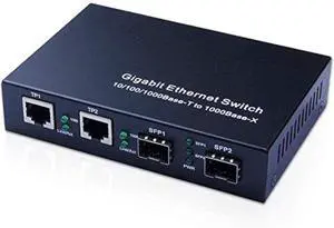 ipolex Gigabit SFP to RJ45 Fiber to Ethernet Media Converter, Dual 10/100/1000Mbps RJ45 Ports to 1000Base-SX/LX/EX SFP Slots, Support Gigabit SFP Modules, Without Transceiver