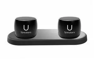 Fashionit U Pro - Mini Bluetooth Speaker Set U Pro TWS Wireless Speakers with Charging Tray ^^ Portable Small Speakers with Surround Sound for Travel, Shower, Beach, Car ^^ Black