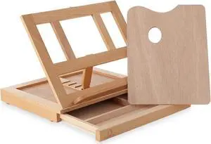 7 Elements Wooden Tabletop Easel with Palette and Storage Drawer - Adjustable Portable Desktop for Art, Painting and Drawing