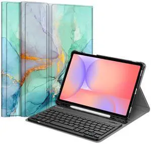 FINTIE Keyboard Case for Samsung Galaxy Tab S10 Lite/ S10 FE/ S9 FE 5G 10.9 Inch/Tab S9 11 Inch with S Pen Holder, Slim Stand Cover Detachable Wireless Bluetooth Keyboard, Emerald Marble