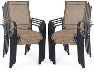 VANBOW Patio Chairs, Outdoor Dining Chairs High Back, All-Weather Padded Textilene Chair for Lawn Porch Garden, Brown Set of 8