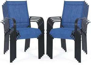 VANBOW Patio Chairs Set of 8, Outdoor Dining Chairs High Back, All-Weather Padded Textilene Chair for Lawn Porch Garden, Blue Set of 8