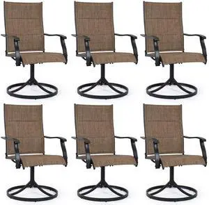 VANBOW Patio Swivel Chairs, Outdoor Dining Chairs High Back, All-Weather Textilene Swivel Rocker Chair for Lawn Porch Garden Brown Set of 6