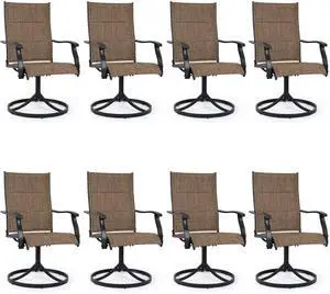 VANBOW Patio Swivel Chairs, Outdoor Dining Chairs High Back, All-Weather Textilene Swivel Rocker Chair for Lawn Porch Garden Brown Set of 8