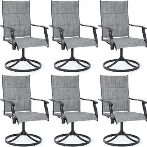 VANBOW Patio Swivel Chairs, Outdoor Dining Chairs High Back, All-Weather Textilene Swivel Rocker Chair for Lawn Porch Garden Grey Set of 6
